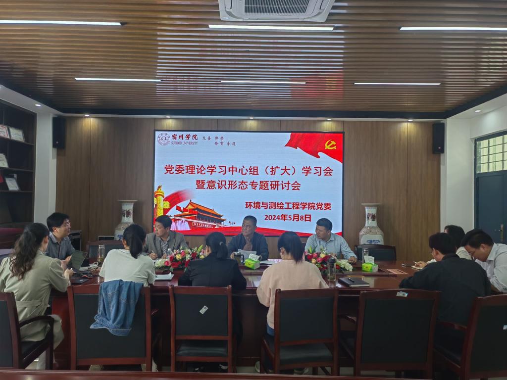 2024年5月8日下午,环境与测绘工程学院党委在工A楼315会议室召开党委理论学习中心组(扩大)学习会。会议由环测学院党委书记胡冰主持,党委委员、科级以上干部、支部书记、辅导员参加会议。
