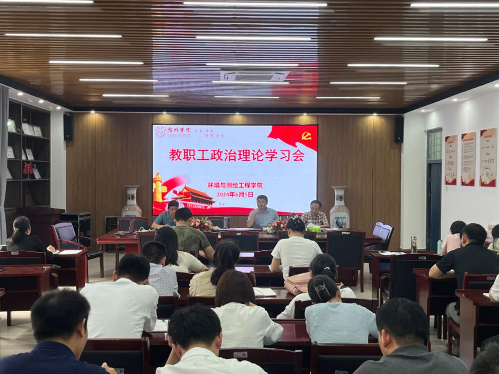 2024年6月5日下午,环境与测绘工程学院在工A315会议室召开教职工政治理论学习会。会议由环测学院党委副书记、院长张海洋主持,全体教职工参加会议。