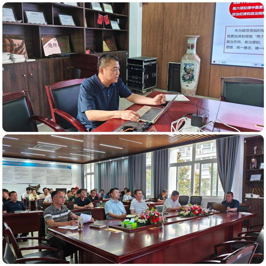 首先,党委书记胡冰讲授了题为《学党纪 明规矩 强党性》的党课,他从“推进全党深刻领悟‘两个确立’的决定性意义、坚决做到‘两个维护’”、“贯彻落实习近平新时代中国特色社会主义思想,将习近平总书记关于全面加强党的纪律建设的重要论述转化为纪律要求”、“靶向施治重点难点问题,用铁的纪律管党治党”、“总结全面从严管党治党经验,实现制度的与时俱进”等四个方面,详细讲述了要始终坚持严的基调,全面加强纪律建设的重要性。