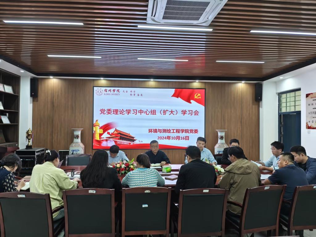 2024年10月16日下午,环境与测绘工程学院党委在工A315会议室召开党委理论学习中心组(扩大)学习会。会议由环测学院党委书记蔡若愚主持,学院党委委员、科级以上干部、支部书记参加会议。