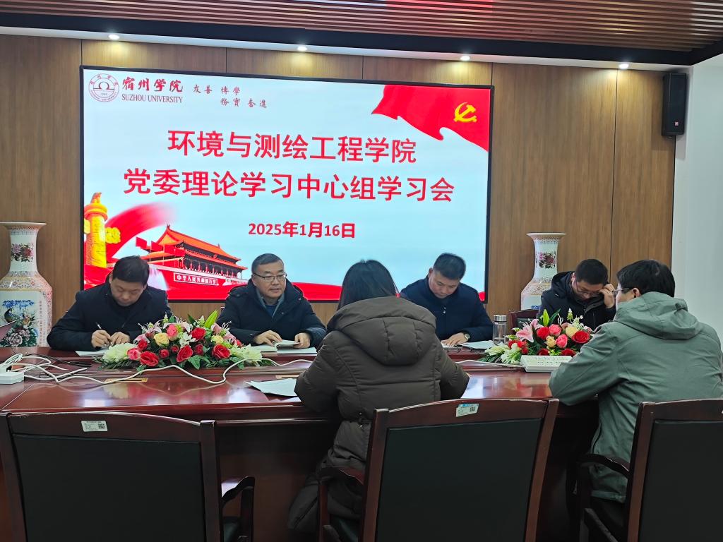 2025年1月16日下午,环境与测绘工程学院在工A315会议室召开1月份党委理论学习中心组学习会。会议由环测学院党委书记蔡若愚主持,党委委员、处级干部参加会议。