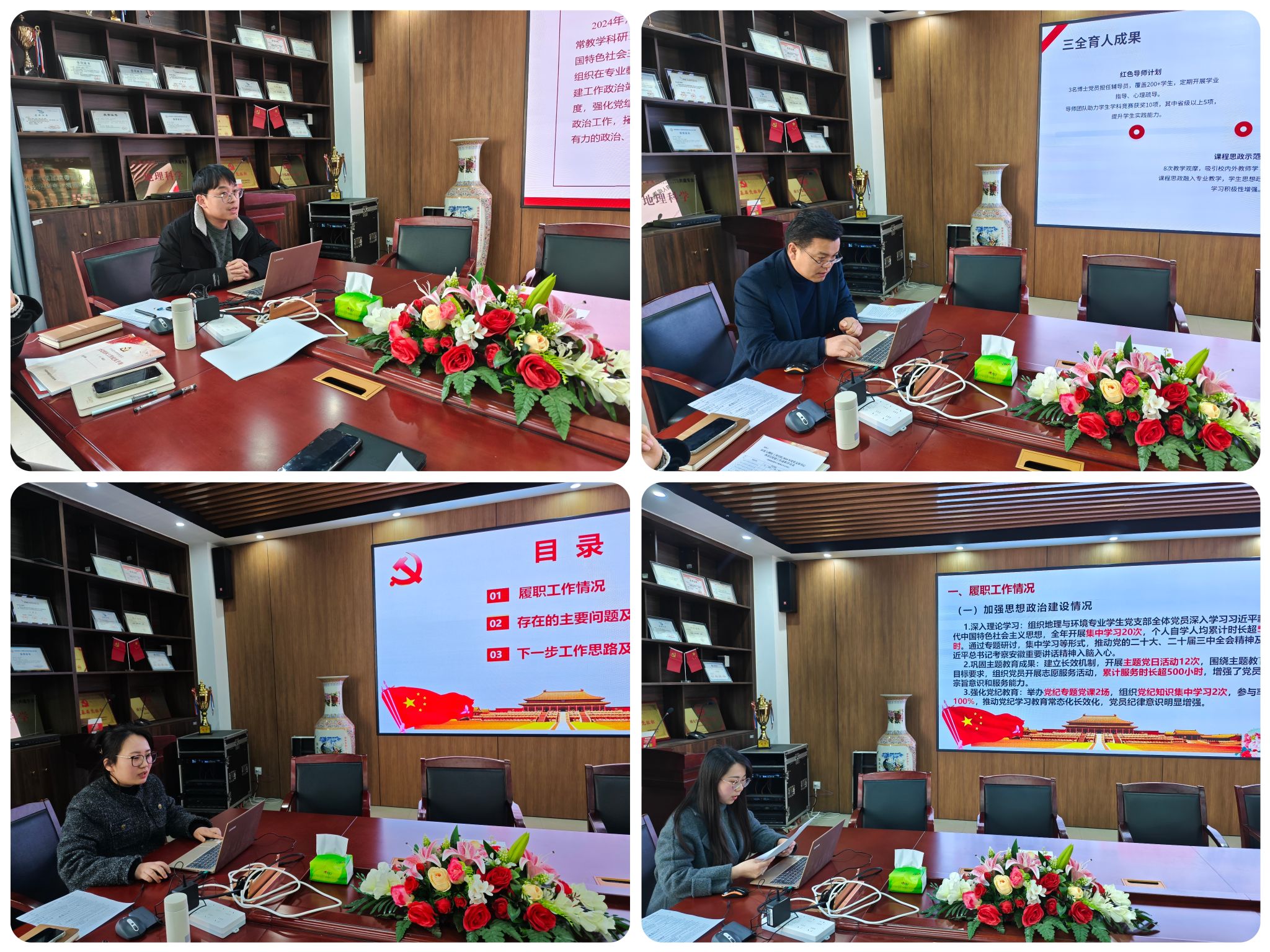 蔡若愚指出,2024年以来,各党支部以习近平新时代中国特色社会主义思想为指导,认真学习贯彻党的二十届三中全会精神,组织广大党员开展党纪学习教育,认真落实学校党委的重要决策和学院各项工作任务,认真抓党建、抓落实,取得的成绩有目共睹。在看到成绩的同时,也存在一些不容忽视的问题,部分党支部也存在学习积极性欠佳、创新与进取意识淡薄、基层调研不足、群众问题解决不及时等问题。2025年,各党支部要继续坚持以习近平新时代中国特色社会主义思想为指导,认真学习贯彻党的二十大精神,全面抓实党的政治建设、思想建设、组织建设、作风建设、纪律建设,把制度建设贯穿其中,不断提升党支部的凝聚力、战斗力,为单位事业发展提供坚实保障。