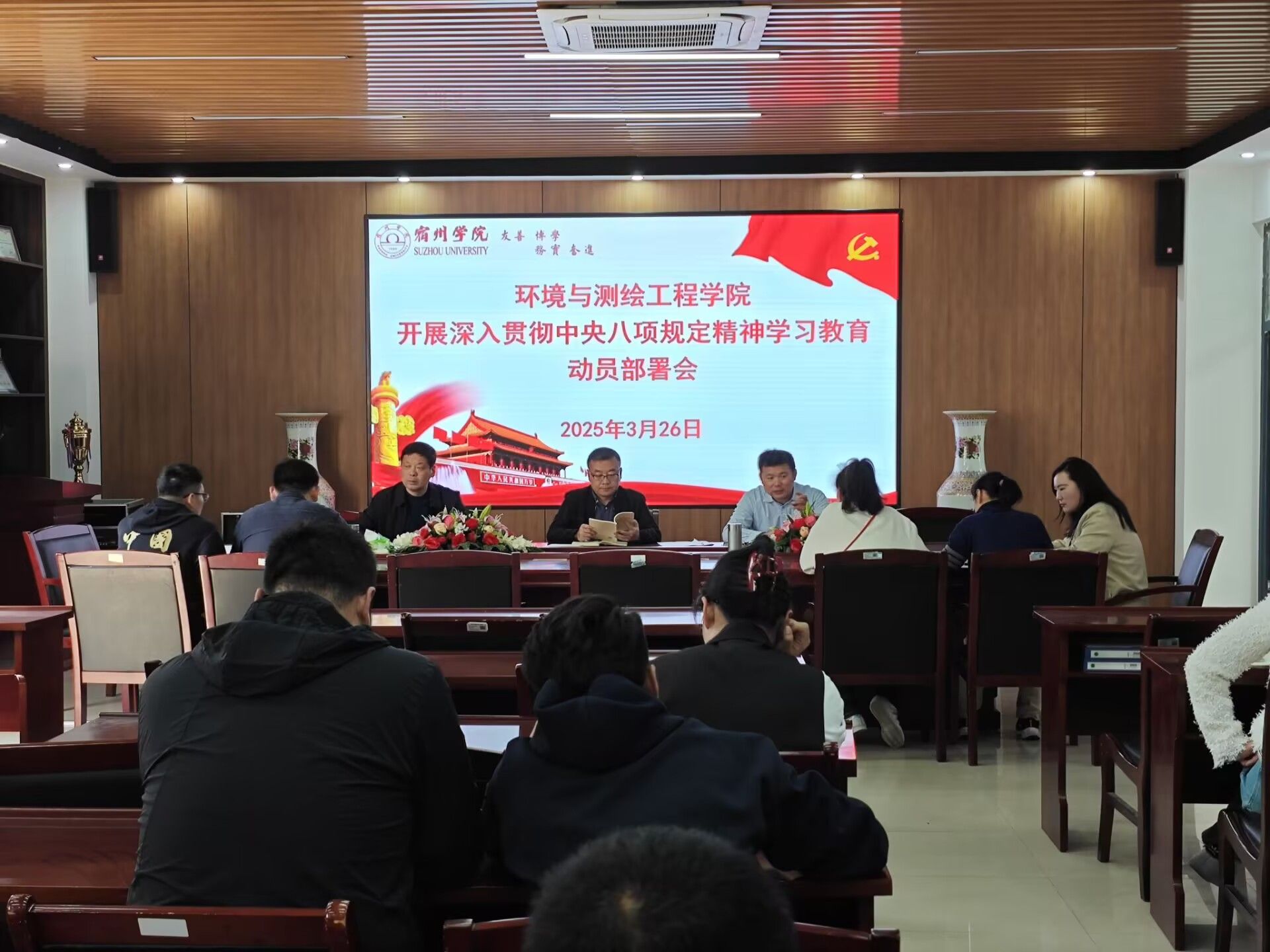 2025年3月26日下午,环境与测绘工程学院在工A315会议室召开深入贯彻中央八项规定精神学习教育动员部署会。学院全体教职工参加会议,会议由学院党委书记蔡若愚主持。