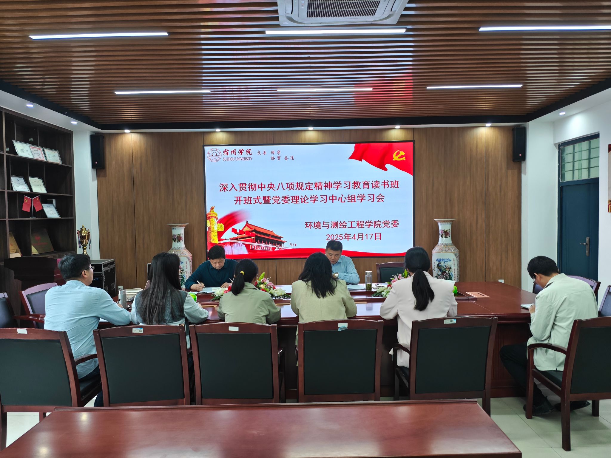 2025年4月17日下午,环境与测绘工程学院在工A315会议室举办深入贯彻中央八项规定精神学习教育读书班开班式暨党委理论学习中心组学习会。学院党委委员、科级干部、支部书记参加会议,非党员处级干部列席会议。会议由学院党委副书记、院长张海洋主持并作读书班开班动员讲话。