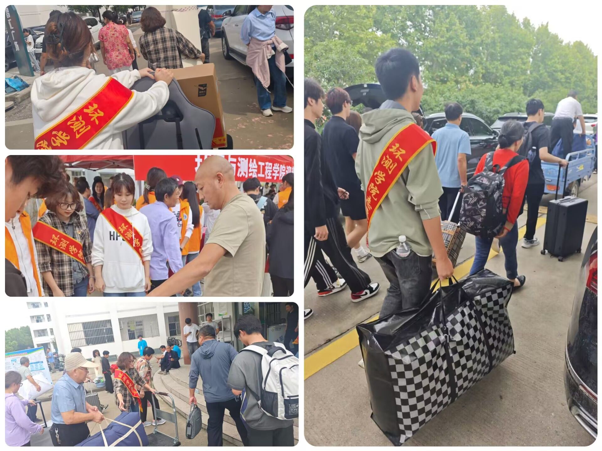 迎新现场,党员们佩戴党员徽章,在咨询引导、行李搬运、宿舍指引等岗位上忙碌。为新生及家长提供 “一站式” 服务,耐心解答校园设施、生活配套等问题。