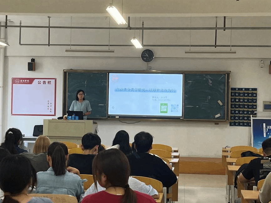 唐淑荣博士在实训楼A501做题为“白粉菌分类学研究—以球针壳族为例”的学术报告。唐博士首先介绍白粉菌,包括概念、分类地位和当前的分类系统,白粉菌科主要是包括5个族;其次,以球针壳族为例,讲述如何寻找科学问题——对球针壳族白粉菌进行文献调研,包含4个属,其中球针壳属在国内分布最多,重点查阅关于球针壳属白粉菌当前哪些种存在同物异名、缺少无性型或有性型阶段以及需要修订的物种等,进而结合形态学、寄主、地理分布和分子系统学研究进行分析。形态学研究分为无性型和有性型2个阶段,但却很少会同时收集到全型的标本,因此需要进行多次采集。由于白粉菌与寄主具有专化性,因此对于寄主植物的准确鉴定具有重要性,但相同寄主可能因地理分布不同而存在地理隔离,因此需要结合地理分布进行分析。最后,通过构建系统发育树,分析属、种间的亲缘关系。