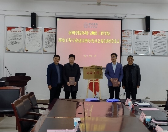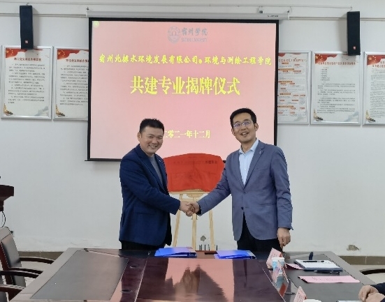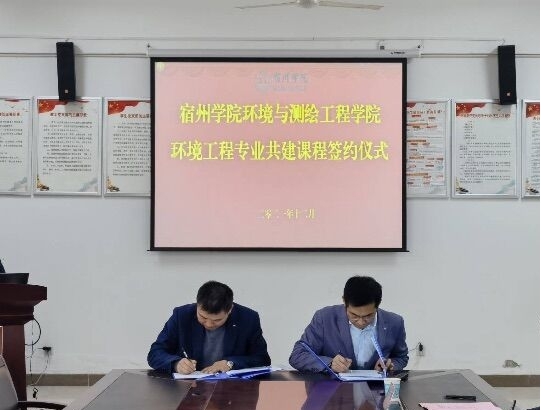 环境与测绘工程学院与宿州北排水环境发展有限公司,就建立宿州学院环境工程专业共建事项,经过友好协商,签订共建专业协议;同时,就环境工程专业的两门核心课程《水污染控制工程》、《环境生态工程》签订共建课程协议,旨在共同打造校企共建优质课程。