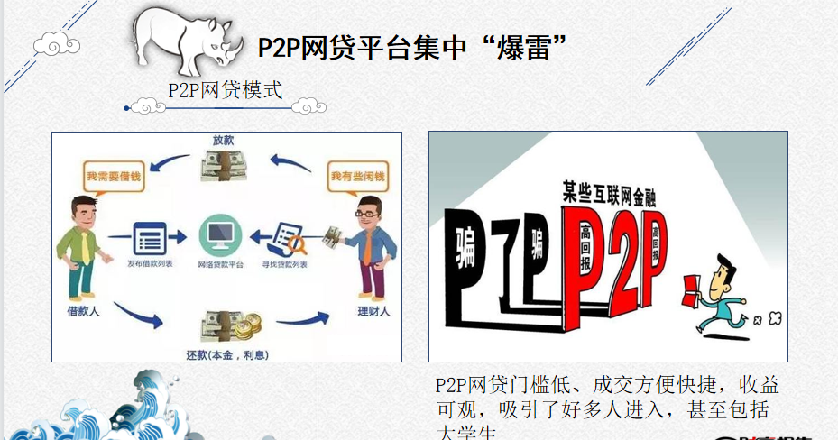 此次班会周婷为大家讲解了P2P网贷平台的网贷模式,分析了近年来全国P2P网贷成交额趋势图以及近年来P2P网贷平台出现了集中“爆雷”,大量投资者面临血本无归的惨境,让同学们李静了P2P公司运营模式以及背后的“庞氏骗局”,提醒同学们提高对骗贷行为的警惕和甄别能力,树立正确的金融安全观,倡导同学们养成勤俭节约的习惯,避免盲目消费、过度消费、超前消费,防范“黑天鹅”和“灰犀牛”事件冲击,切实增强忧患意识和底线思维。