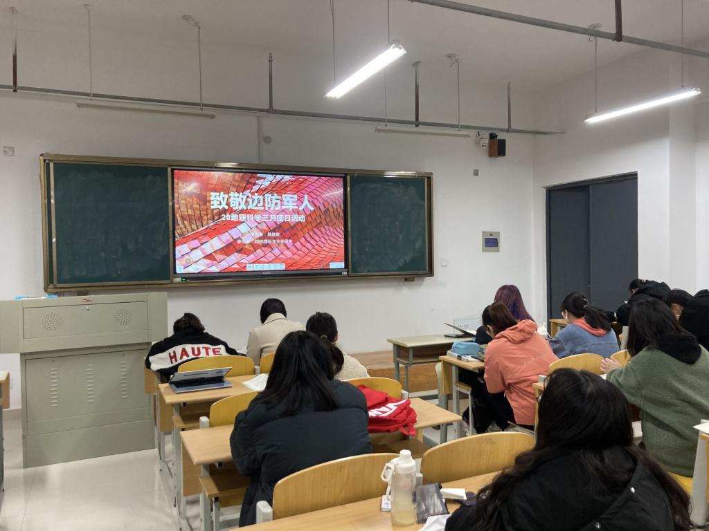 20地理科学于2021年3月18日在实训楼505举办了以“致敬边防军人”为主题的团日活动。
