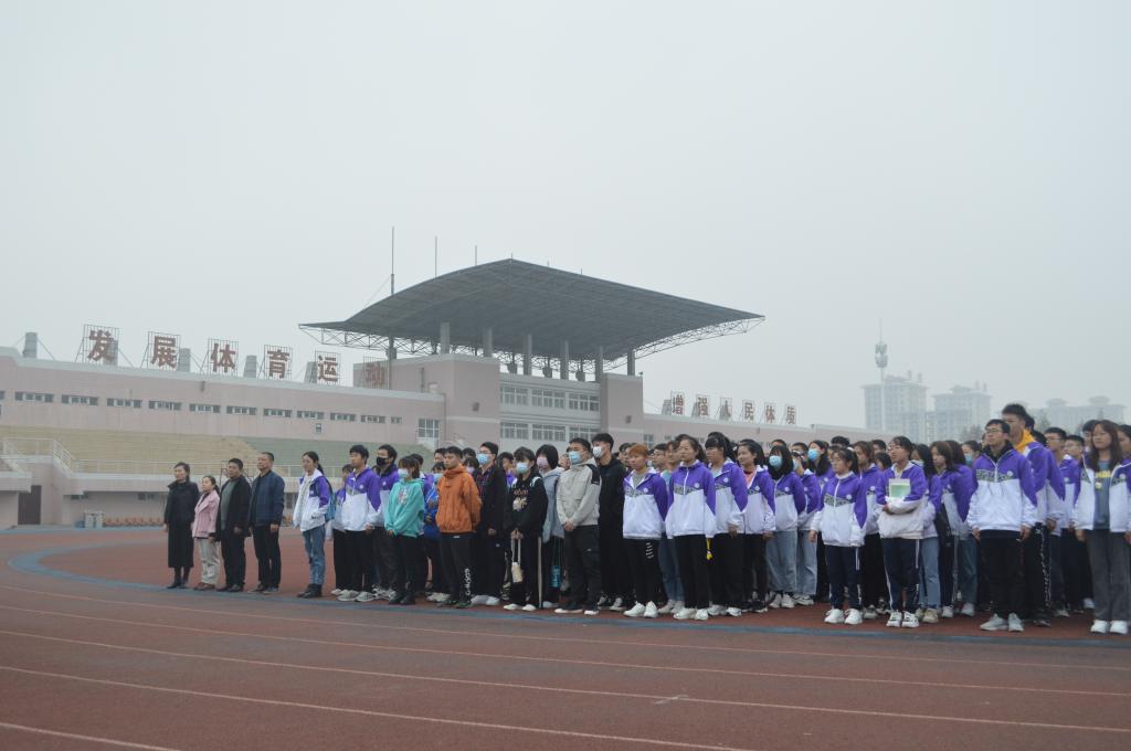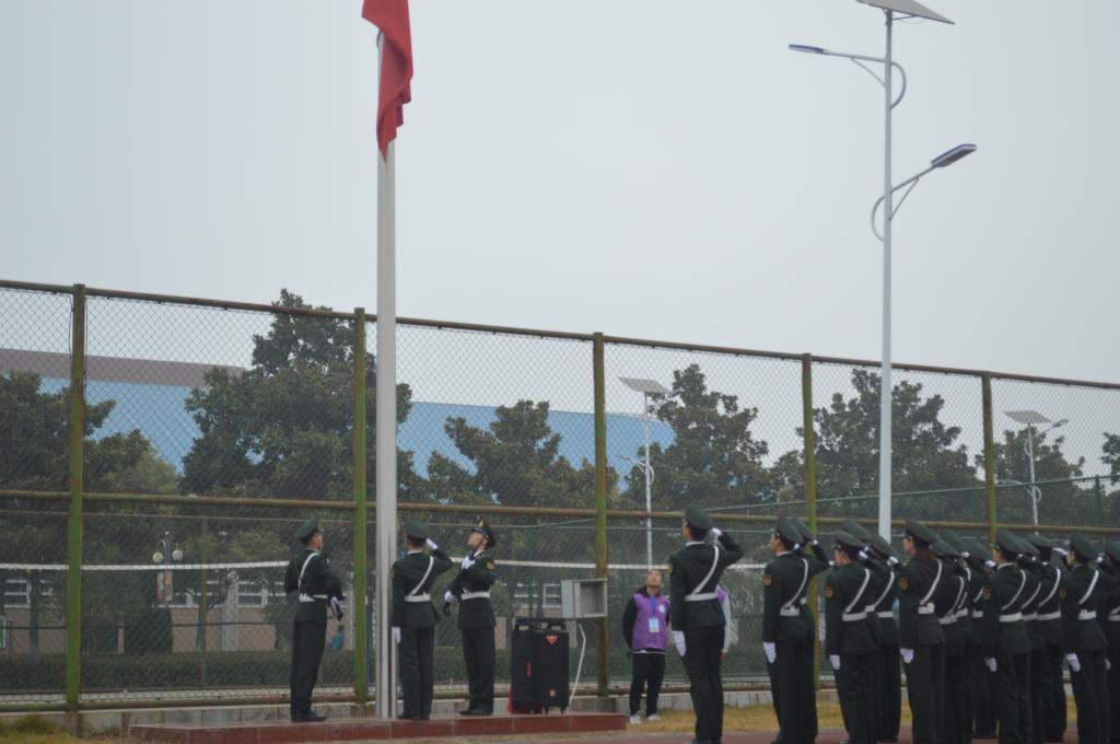 7点16分,伴着薄薄雾气,同学们身穿校服,在操场北侧排列整齐。在全体师生的注目礼下,英姿飒爽的国旗护卫队队员护送鲜艳的五星红旗进场,行礼完毕,伴随着庄严的国歌,五星红旗冉冉升起,随风飘扬。在场的每位师生都向着国旗行注目礼,满怀着对祖国的热忱敬意。