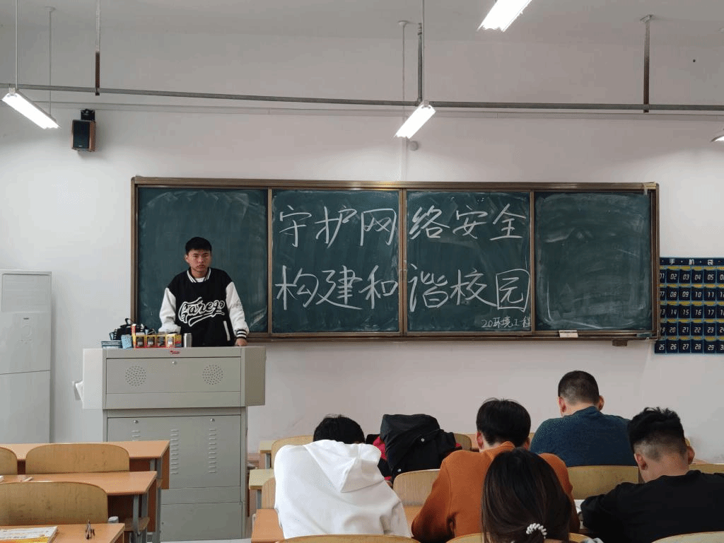 网络提供了丰富的信息资源,创造了精彩的娱乐时空,成为学生学习知识、交流思想、休闲娱乐的重要平台,增强了与外界的沟通和交流,但网络犹如一把双刃剑,其中一些不良内容也极易对学生造成伤害。为进一步提升师生的网络安全意识,营造安全、健康、文明、和谐的网络环境。团支书在活动中结合实际情况做出详细的介绍,结合习近平总书记对国家网络安全工作作出重要指示精神,呼吁学生安全上网。