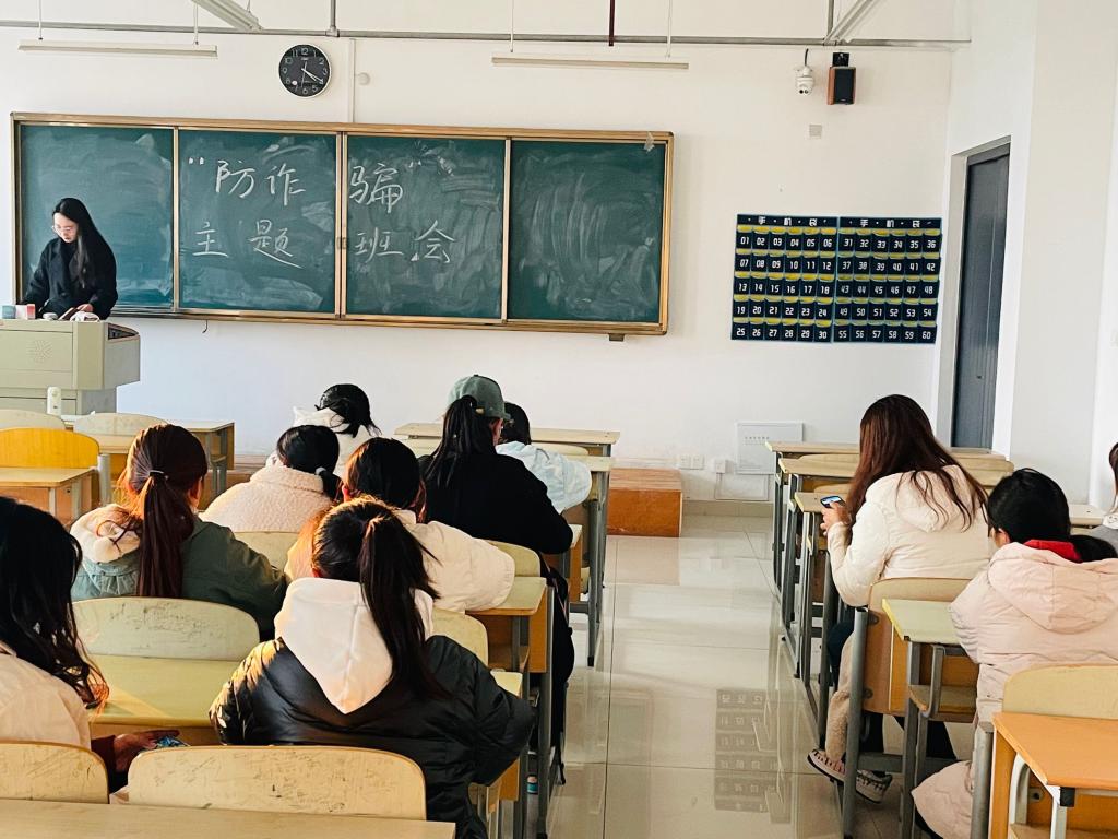 各班级辅导员紧紧结合教育教学实际,通过典型案例、警示教育等形式,介绍电信网络诈骗的惯用手段,宣传杀猪盘、网络刷单、冒充网络客服诈骗、裸聊诈骗等八种常见诈骗形式,生动展现诈骗套路,普及防范方法,帮助学生群体提高识骗防骗的能力。辅导员教育引导学生下载安装注册国家反诈中心APP,发放“宿州学院防范电信诈骗告知书”,引导学生在涉及金钱的行为中提高警惕、多留心眼,练就一双反诈识炸的慧眼,降低被诈骗风险,同时要遵守国家法律法规,坚决抵制诈骗行为。