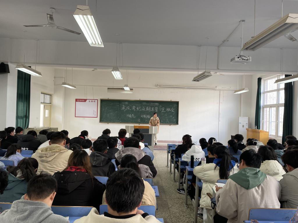 会上,辅导员周婷带领同学们学习《宿州学院学生违反考试纪律处理办法》,让同学们认识到考试作弊的危害。她强调考风是学风的一个重要的指标,直接决定了我们的班风和学风。抓好考风既是为了我们个人,同时也是为了大家,为了班级的公平。考试是检验学习效果的一种手段,我们要正确认识考试,不能自欺欺人,不要抱侥幸心理。作弊是另一种盗窃,同学们要有底线意识,不要做违背底线的事,不做违背公平的事。同时,她也给同学们说明了考场里一些具体要求,携带好证件和文具,不带食物进考场,不穿拖鞋等。