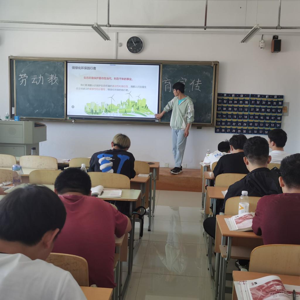 首先由班长李俊杰同学向我们介绍了劳动教育是国民教育体系的重要内容,是学生成长的必要途径,具有树德、增智、强体、育美的综合育人价值。然后从四个方面指导我们大学生如何开展校园劳动义务:做绿化环保践行者,树立绿色低碳意识,认识到节能减排的紧迫感和使命感,牢固树立绿色低碳理念;做垃圾分类倡导者,让民众学会节约资源、利用资源,提高个人的素质素养;做寝室美化时尚者,促进舍友间相互影响、彼此照应、的良好氛围,促进我们综合素质等各方面的提高;做公共区域环境维护者,保护校园环境,创建无烟校园并维持校园秩序,提高我们的个人素质。最后,李俊杰同学倡导我们打扫教室卫生和寝室卫生,从小事做起,开始我们的劳动。