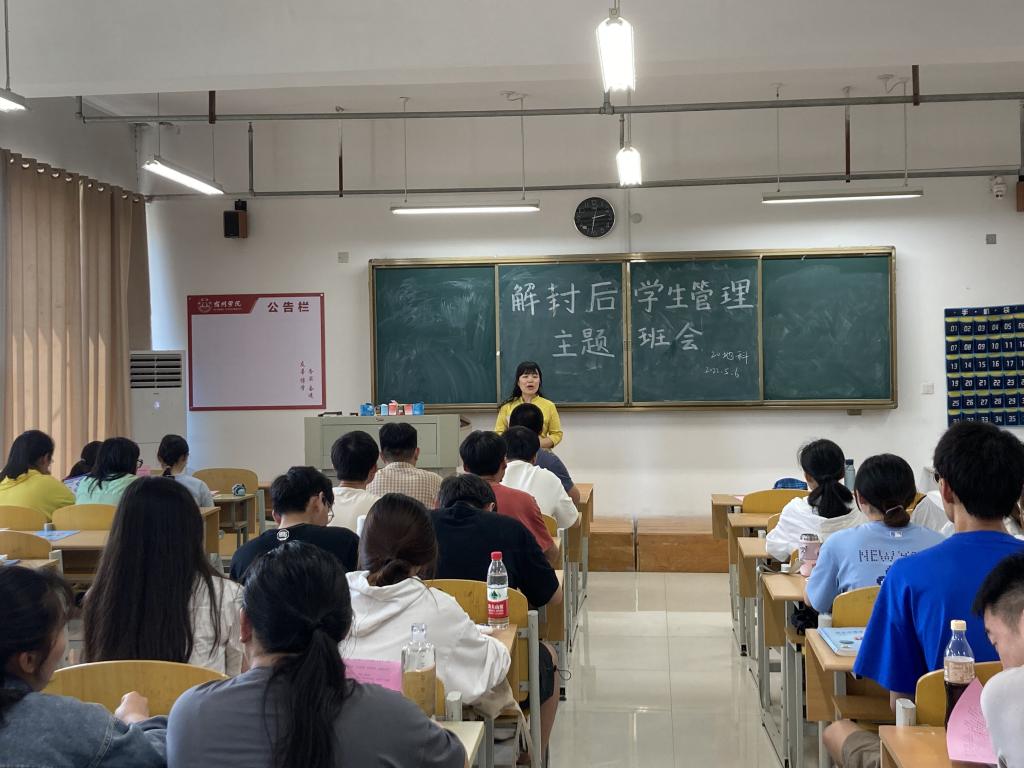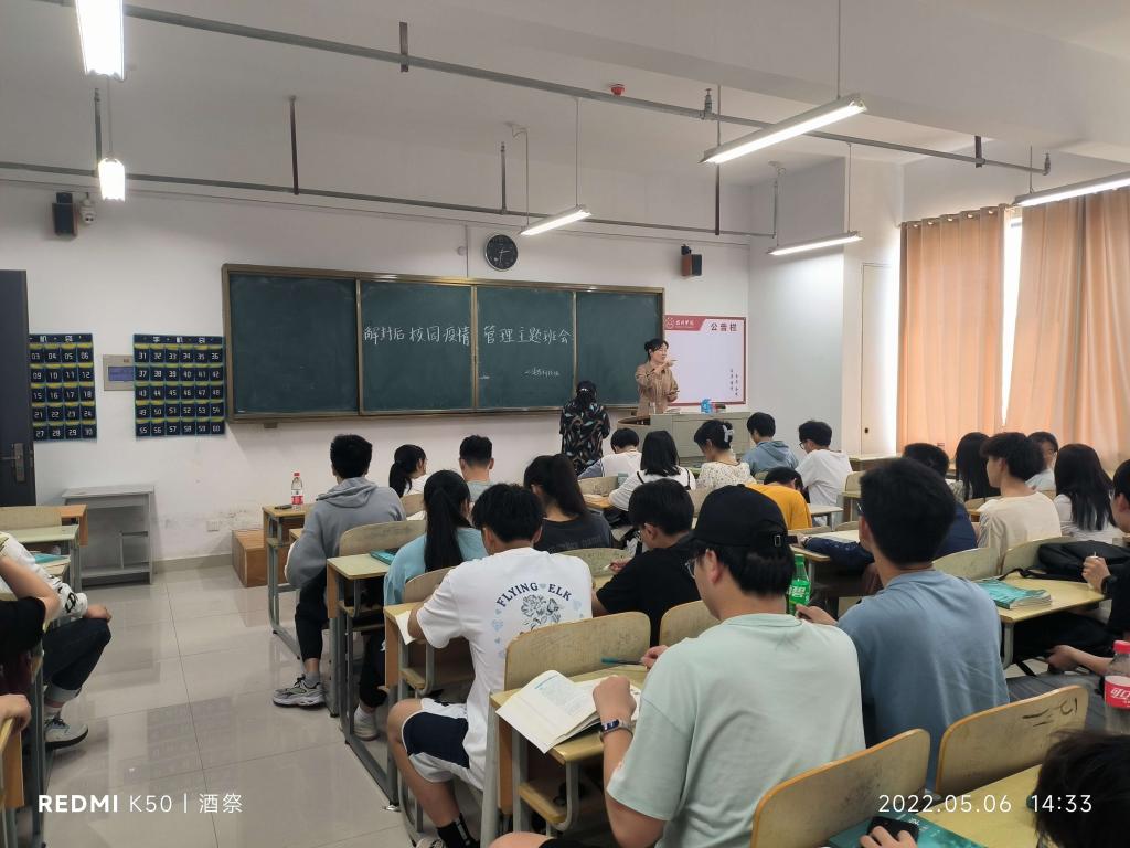 根据宿州市新冠肺炎疫情防控应急指挥部办公室《关于有序解除校园封闭管理的通知》,结合学校通知精神及学院会议精神,2022年5月6日,环测学院各班级通过线上线下相结合的方式组织召开解封不解防学生管理主题班会,班会由辅导员组织,全体学生参加。