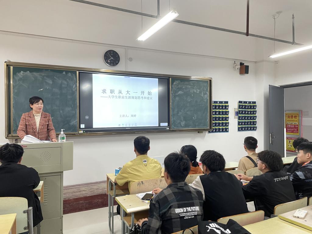 最后,辅导员分析了职业选择的多种途径,包括直接面向企业单位的应聘、应征入伍、三支一扶、西部计划等。并通过21届优秀学长施华胜录制的视频,分享了他在就职国泰新点软件公司后的职场发展和努力,告诉同学们要好好利用大学的美好时光,珍惜当下,明确奋斗目标。