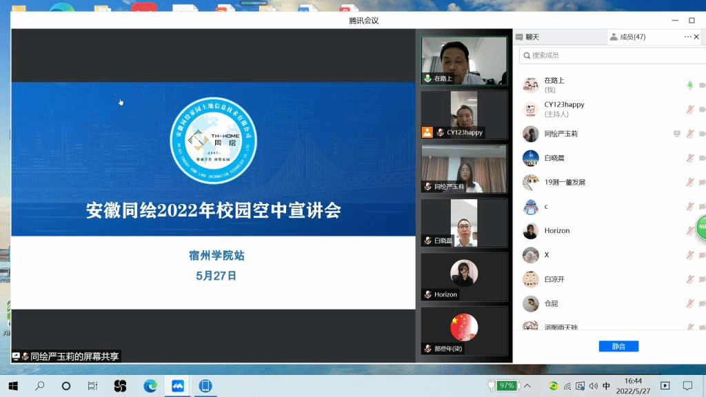 为进一步推动毕业生就业工作,5月27日下午,环测学院在腾讯会议举办安徽同绘家园土地信息技术有限公司空中宣讲招聘会,招聘单位白晓晨经理,人事主管严玉莉,环测学院党委副书记李建新,就业联络员陈影及22届部分毕业生、19级测绘工程专业学生参加了此次招聘会。