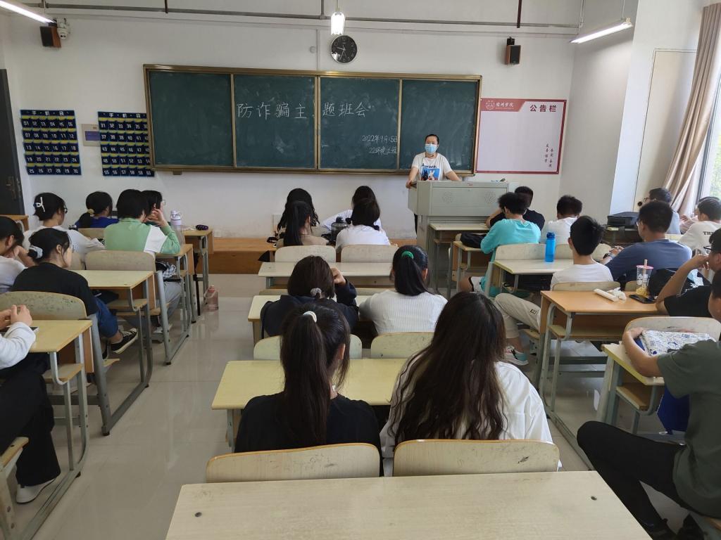 各班级辅导员通报了近期电诈典型案例,紧紧结合教育教学实际,围绕发布刷单返利诈骗、虚假投资理财诈骗、虚假网络贷款诈骗、冒充客服诈骗、冒充公检法诈骗等当前5大高发类案件,剖析典型诈骗手法、普及防骗知识。同时要求全体学生下载安装国家反诈中心APP,帮助学生群体提高识骗防骗的能力,告诫同学们在涉及金钱的言行举止中要提高警惕、多留心眼,练就一双反诈识炸的慧眼,降低被诈骗风险,同时要遵守国家法律法规,坚决抵制诈骗行为。