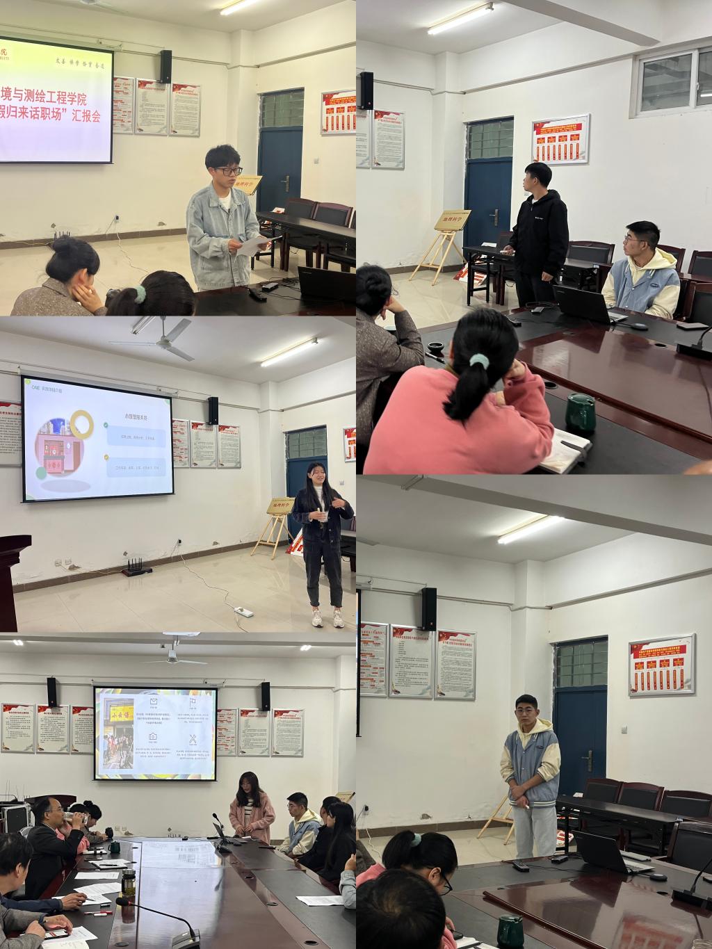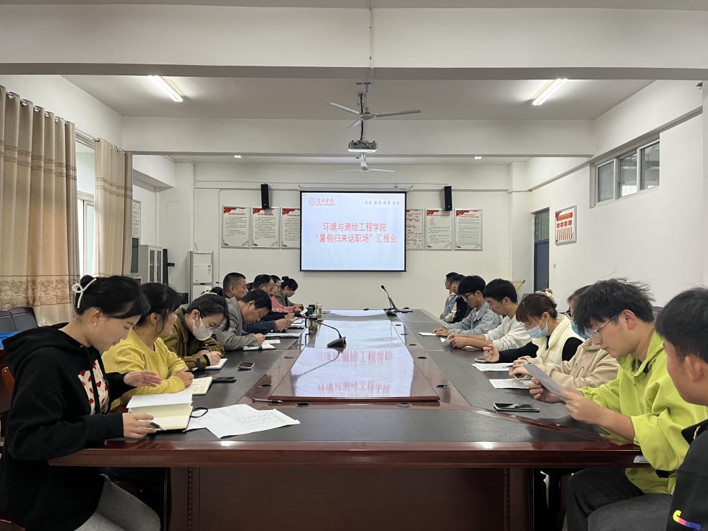 为进一步落实“立德树人”根本任务,拓展师生交流互动途径,按照学工部统一部署,环测学院于2022年10月10日在工科楼A315会议室组织开展“暑假归来话职场”汇报会,2019级、2020级、2021级三个年级共计10名学生参与。环测学院党委副书记(临时负责)胡冰,党委副书记、纪委书记李建新,教学副院长徐国伟,全体辅导员及部分学生代表参加。