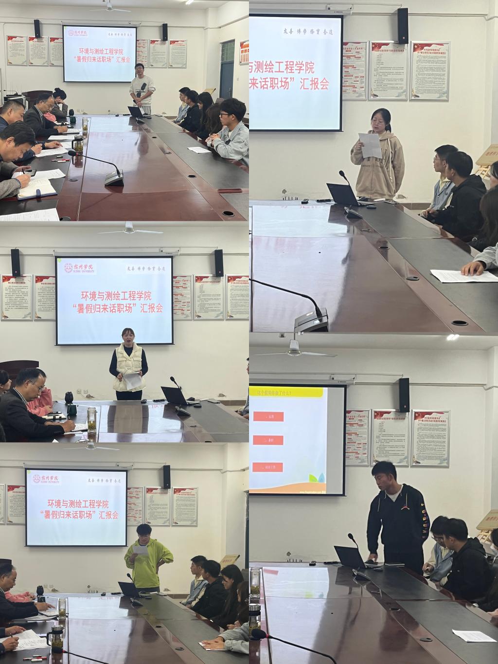 汇报会上,同学们围绕暑期社会实践(含劳动实践、志愿服务)、学科竞赛、勤工助学、兼职打工等各类有意义的职场体验活动展开来讲。程美花、张正、陈金月、秦晓敏等同学积极参加暑假兼职,分享了自己到餐馆的打工经历;李俊杰、徐贤坤、周宗坤等同学报名参加学科竞赛;朱少东同学到宿州市埇桥区爱家公益参加志愿活动,陪伴照顾失亲儿,宣传疫情防控知识;苏康伟到基层乡镇参加社会实践;孙大发分享了自己的创业经历。