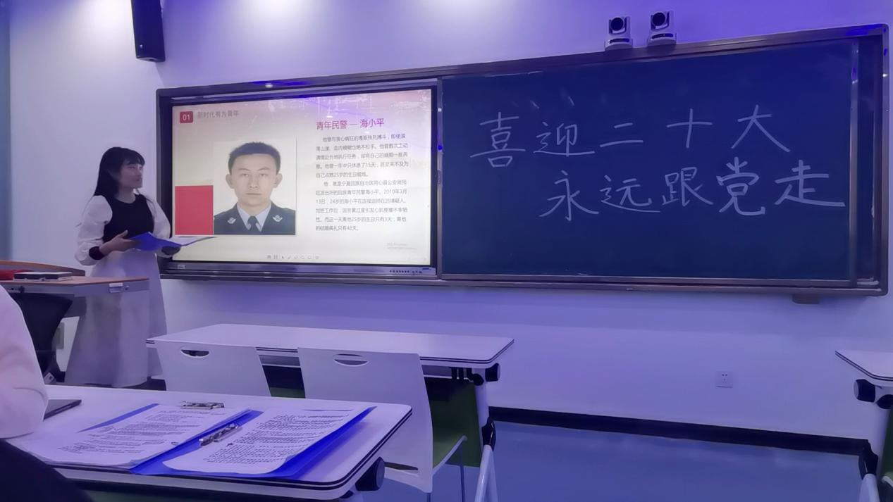 本次活动以“喜迎二十大,永远跟党走”为主题,主讲人用质朴的语言、生动的事例,声情并茂的为大家讲述了人民警察海小平、扶贫干部黄文秀的优秀事迹,一代青年优秀事迹用青春诠释了中国共产党党员的初心使命,谱写了新时代的青春之歌,留下宝贵的精神财富。通过学习中国共产党的百年奋斗历史,明确了永远跟党走的主题,配合幻灯片、视频等数字化手段将宣讲活动的教育目的最大化。