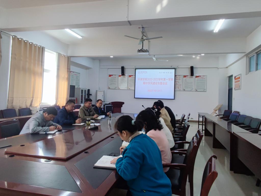 为落实“立德树人”根本任务,落实“三全育人”综合改革任务,营造良好的校风和班风,践行“笃学 笃行 笃信”的优良学风,10月31日上午,环测学院在工科楼A315会议室召开期中学风建设专题会议。会议由党委书记胡冰主持,党委副书记、院长张海洋,党委副书记、纪委书记李建新,教学副院长徐国伟,教学秘书孙朋以及全体辅导员参加。