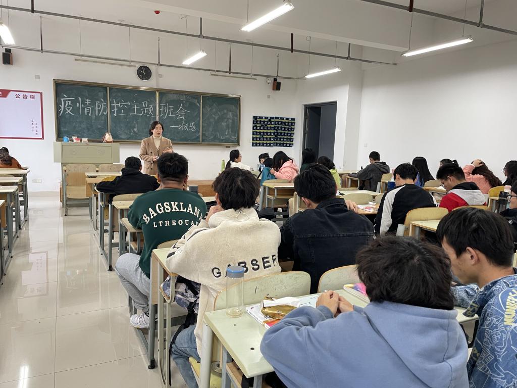 班会上,各班级辅导员首先解读了疫情防控“二十条”措施,通报了宿州市疫情情况,要求同学们认识到当前疫情形势的严峻复杂性,非必要不离校,可以在学校2公里内活动,处理完事情后应及时返回,严禁在外过夜,非必要不去市里,更不能出市,去市里必须履行请销假手续。