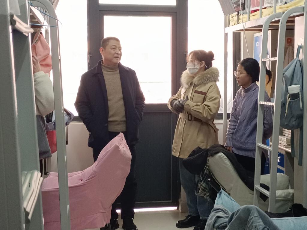 学期伊始,为进一步了解学生思想动态,提升学生养成教育和劳动教育,营造良好的学习生活环境,2月13日,环测学院党委书记胡冰,党委副书记、院长张海洋,党委副书记、纪委书记李建新,教学副院长徐国伟带队走访学生宿舍,学院辅导员一起参加。