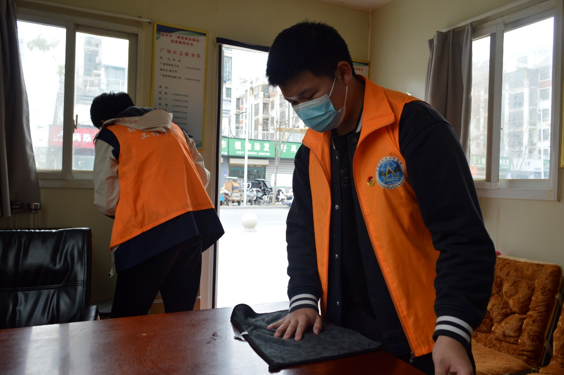 志愿者们到达现场后,进行全体动员和工作分配,同学们秉持着传播爱心,传递文明的原则,精神饱满地投入到清理工作。志愿者们分为四组,分别负责清扫地面垃圾、宣传雷锋精神、整理图书和围栏清洁、志愿者们通力合作,各显身手,分段分块清扫,有的拿着竹扫把一路披荆斩棘,有的拿着抹布让每一个栅栏焕发光彩,用自身行动将志愿精神潜移默化地传递给现场的每一个人。活动结束后,志愿者们说到“今后会自觉参与并带动更多人加入到志愿者的行列中,让更多人懂得奉献和环保”。广场群众对志愿者的行为纷纷表示认可和赞扬。
