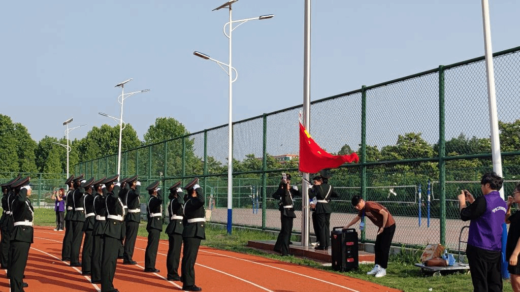 早上七点二十分,升旗仪式正式开始,国防后备连的护旗手们在全体人员的注目下,护卫鲜艳的五星红旗进场。伴随着国歌响起,鲜艳的五星红旗冉冉向上升起。在场所有人员庄严肃立,面向国旗行注目礼。随后由袁雅林同学作主题为《斗志的青春,红色的未来》诗歌朗诵,号召同学们以史为鉴,培养品格,承担起民族复兴重任。最后,李建新对全体学生提出几点期望:一、要树立大局观念,将“小我”融入“大我”;二、笃定成才之志,鼓励年轻一代积极进取,不负韶华,始终牢记习近平总书记嘱托,努力加强自身修养,肩负起新时代青年的历史使命和时代责任。