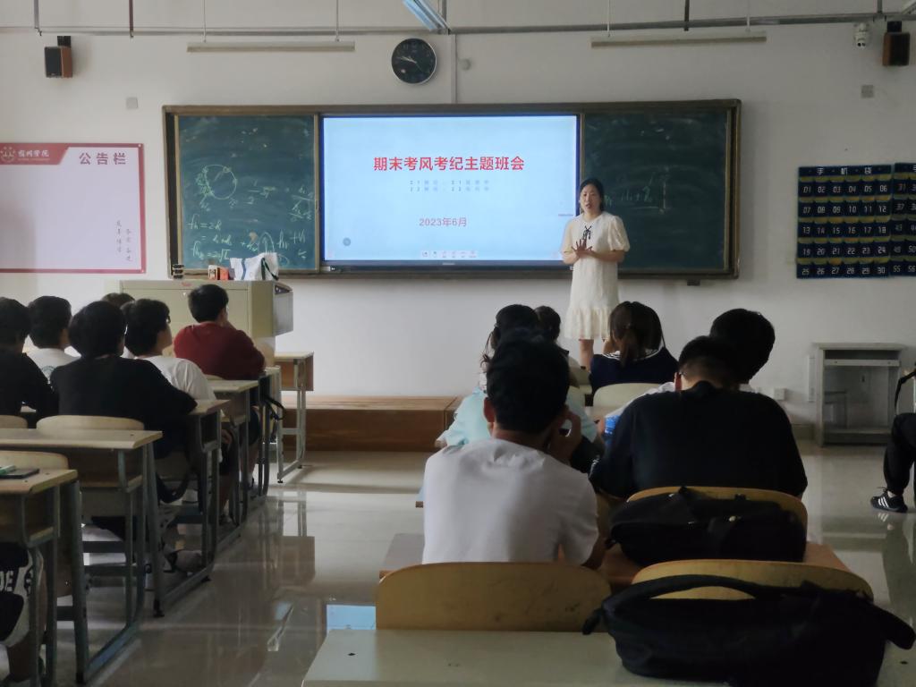 班会上,周婷向同学们传达了学院考场纪律和要求,并带领同学们重点学习了《中华人民共和国刑法修正案(九)》和《宿州学院学生违反考试纪律处理办法》等内容,结合典型警示案例,讲述了考试作弊的危害性和严重性,引导学生认真复习备考,诚信应考。