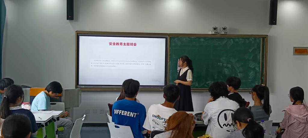 随后,周婷带领同学们学习了新《中华人民共和国安全生产法》和《安徽省学校安全条例》等内容,结合校园安全事故案例,提醒同学们预防安全事故的发生。