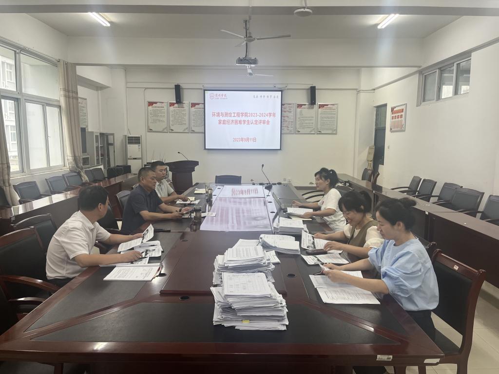 切实做好2023-2024学年度家庭经济困难学生认定评审推荐工作,2023年9月11日下午,环测学院国家奖助学金评审领导小组在工A315会议室召开2023-2024学年度家庭经济困难学生认定评审会。评审领导小组组长、党委书记胡冰主持会议,党委副书记、院长张海洋,党委副书记、纪委书记李建新,教学副院长徐国伟及全体辅导员参加会议。