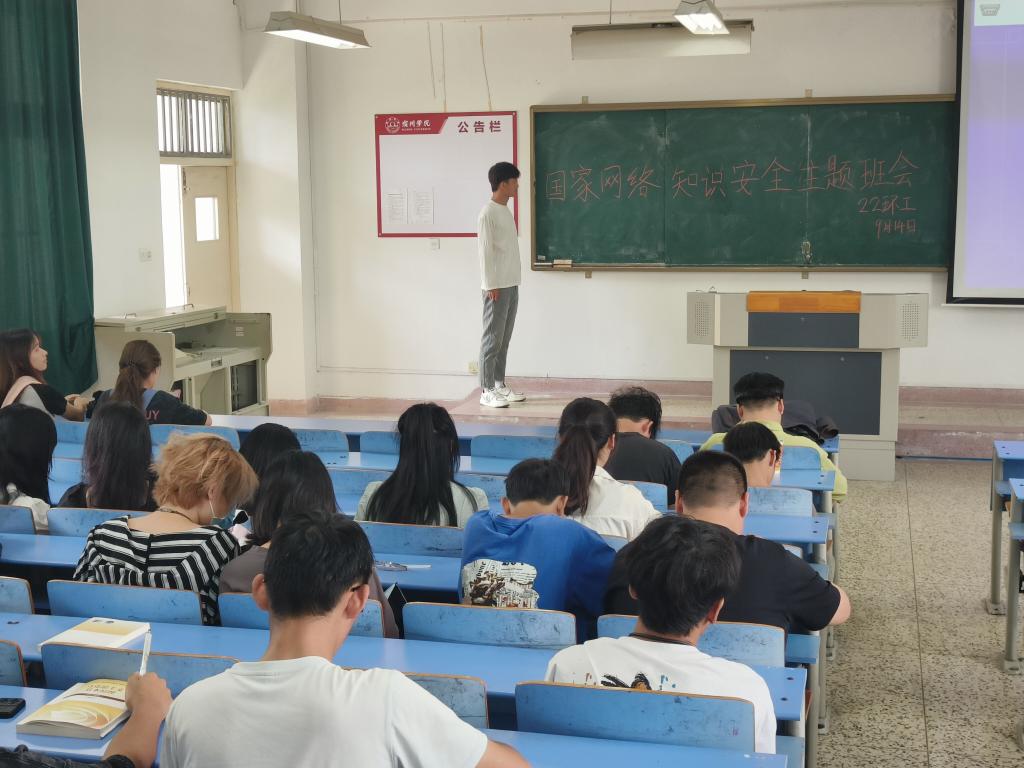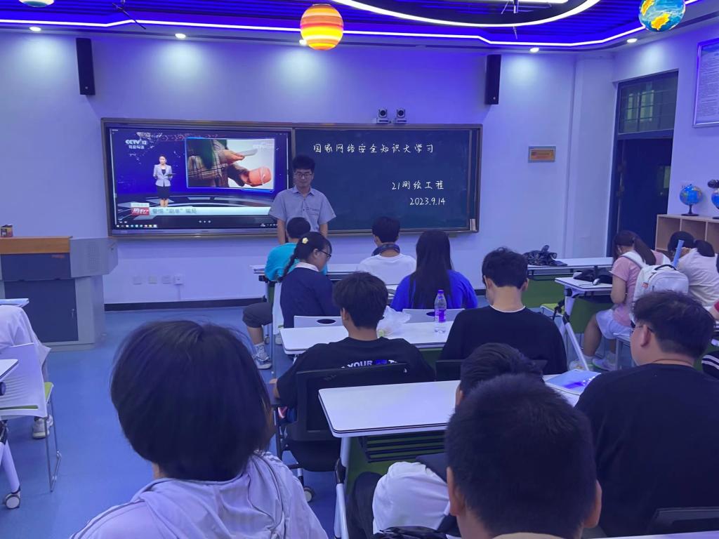 各班级辅导员召开国家安全宣传教育主题班会,传达了《教育部思想政治工作司关于组织开展2023年国家网络安全宣传周校园日活动的通知》、《安徽省教育厅关于组织开展2023年国家网络安全宣传周校园日活动的通知》要求和省委网信办有关工作安排精神。班会上,辅导员动员同学们通过“中国大学生在线”微信公众号,点击菜单栏“守护青春”参与大学生网络安全知识答题,帮助大学生提高防范网络诈骗、安全使用网络的能力;辅导员传达了中国大学生在线开展的大学生网络素养能力提升大课堂活动,通过观看提升大学生安全用网、文明上网能力素养;同时传达了中国大学生在线设立的网络安全专栏,帮助大学生了解各类媒介的特点和使用方法,理性看待媒介中的信息,学会信息甄别,正确地使用、生产和传播媒介产品。