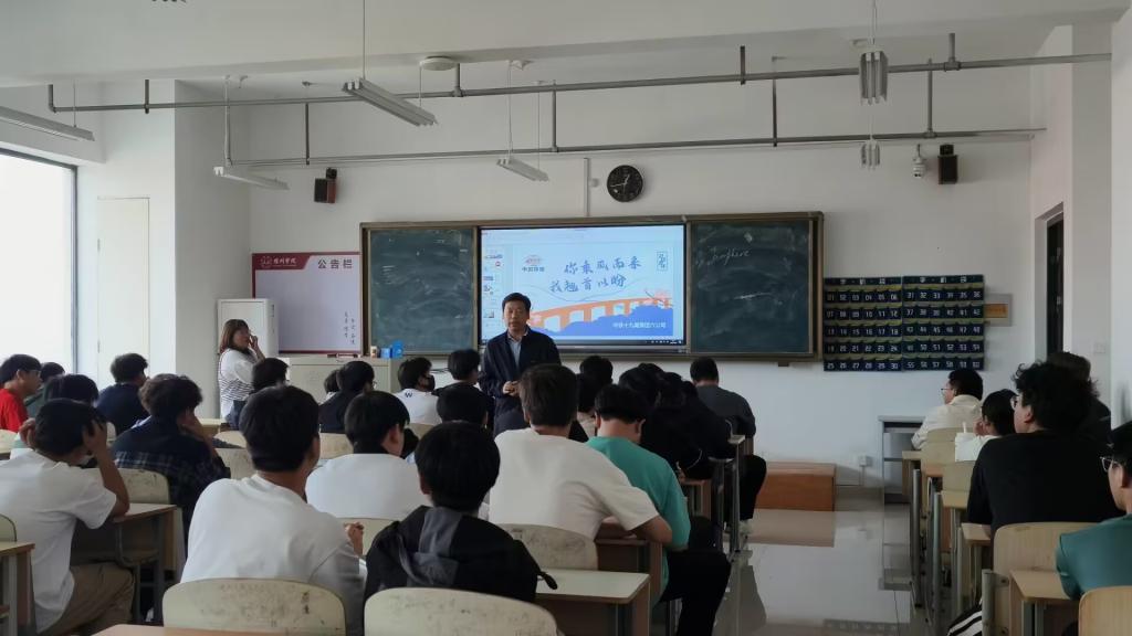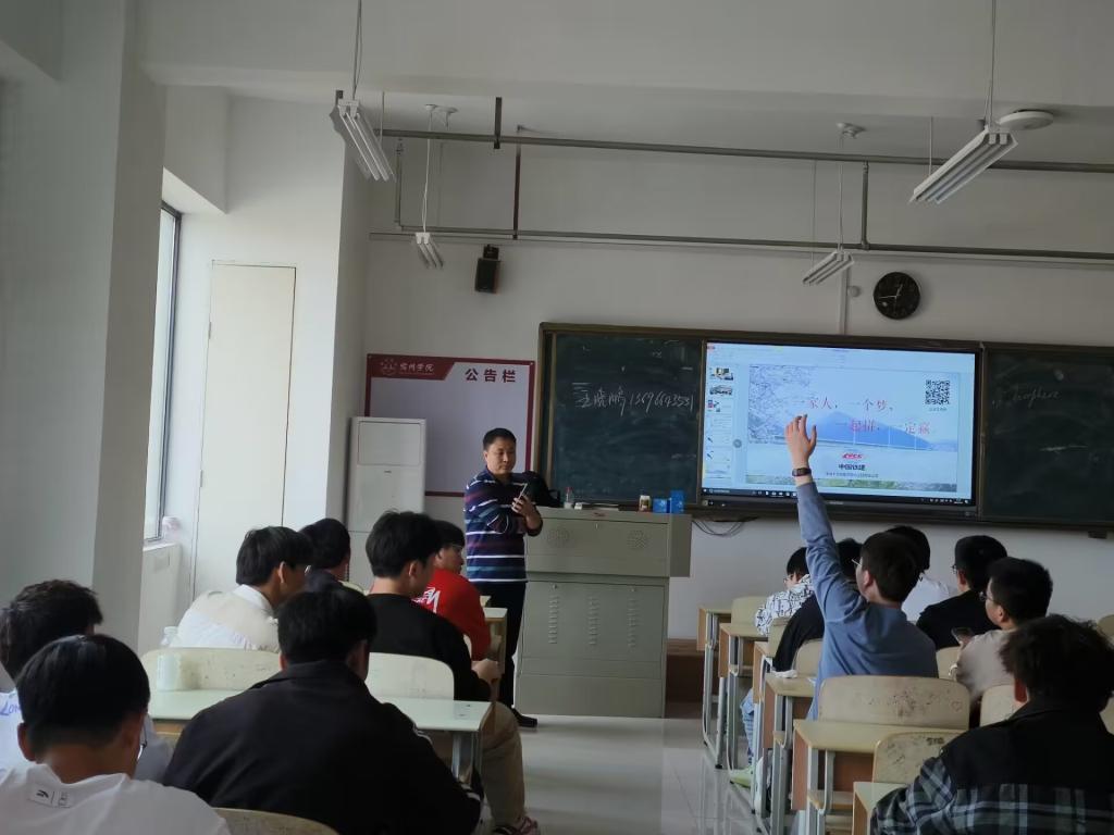 招聘会上,李建新对招聘单位进行了简单介绍,鼓励同学们积极投递简历。紧接着,中铁十九局第六工程公司胡远红、中国华冶科工集团有限公司王晓鹏分别对公司基本情况、招聘条件、工资待遇以及企业发展等进行了介绍。毕业生对工作基本要求、施工项目主要内容、个人职业发展等相关问题与招聘人员做了充分交流。最终多名毕业生达成就业意向。
