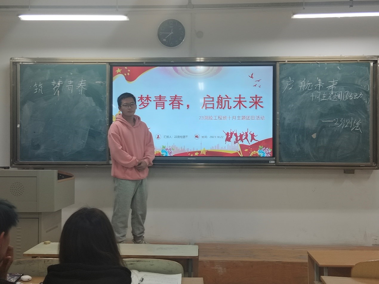 为践行“请党放心,强国有我“的青春誓言,培养同学们追求进步、服务人民、奉献社会的意识。23测绘开展”筑梦青春,启航未来“主题团日活动。