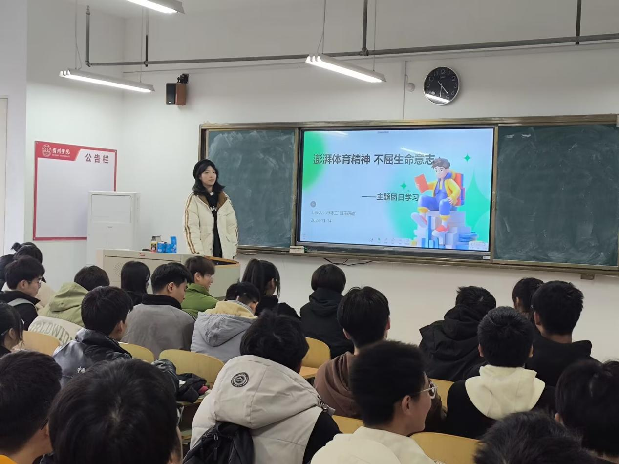 为帮助同学们树立“平等、融合、 共享”的价值理念,11月14日下午,环境与测绘工程学院23环境工程1班全体同学在实训楼a502教室开展“澎湃体育激情,不屈生命意志”主题团日活动。