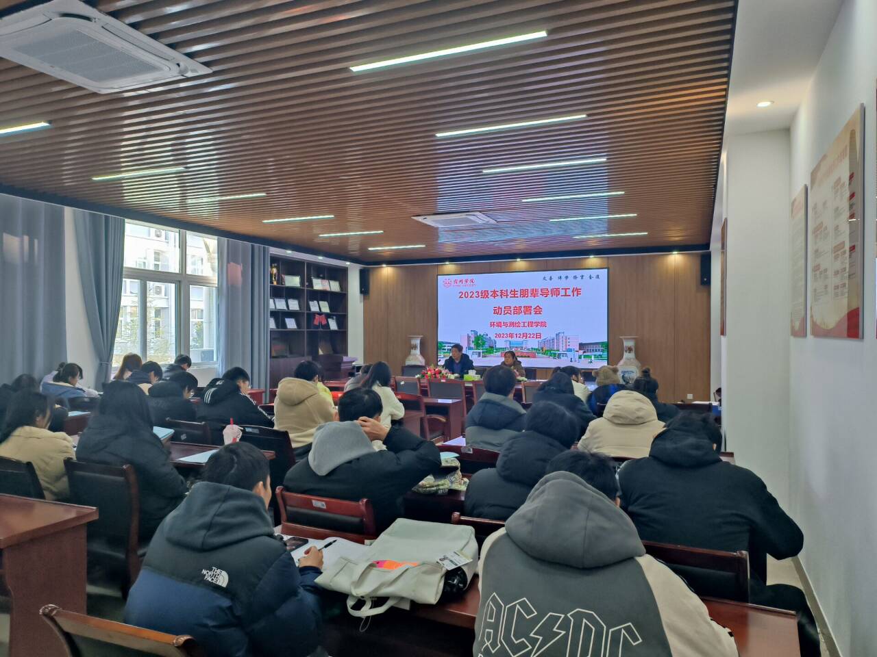 为深入推进我院朋辈导师工作进程,明确下一步工作方向,帮助2023级新生进一步适应大学生活学习节奏。环境与测绘工程学院于12月22日开展2023级本科生朋辈导师工作动员部署会,党委副书记、纪委书记李建新、分团委书记杨文及学院2023级朋辈导师们参加本次会议。