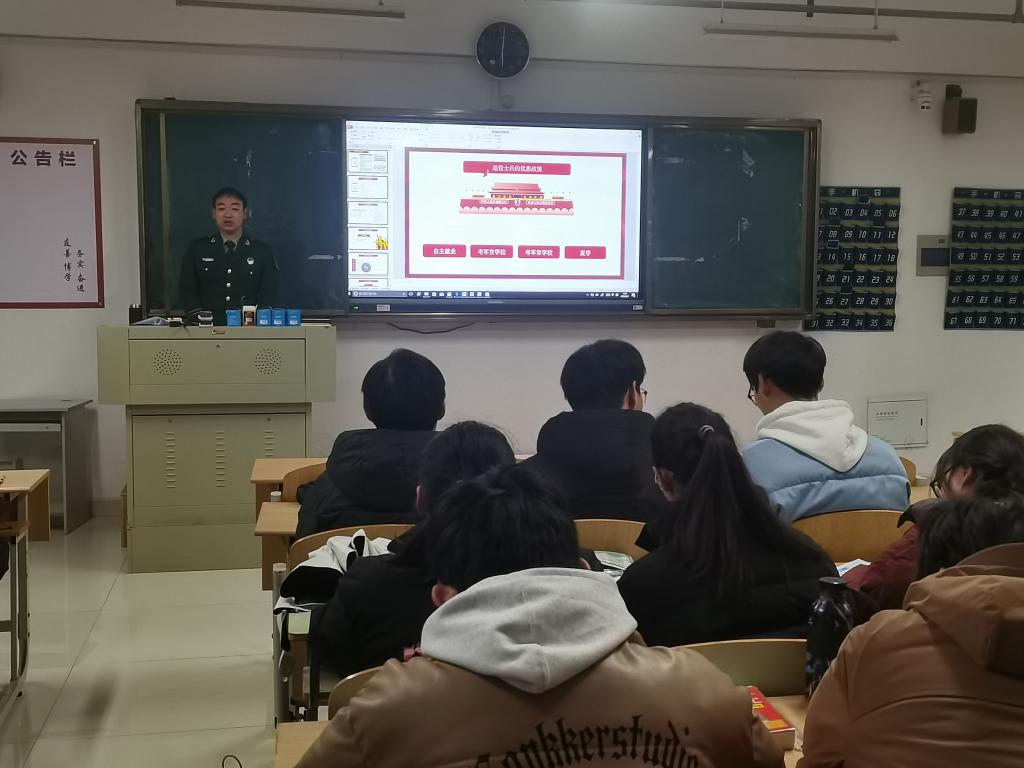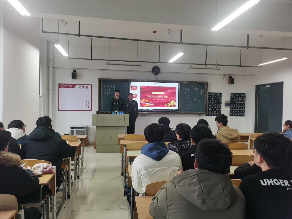 为激发学子们入伍热情,引导积极投身国防事业,2月29日下午,21测绘、21遥感在实训楼A501举办应征入伍讲座,讲座由退役大学生代表刘敦龙、周连升主讲,辅导员周婷主持,班级全体学生参加。
