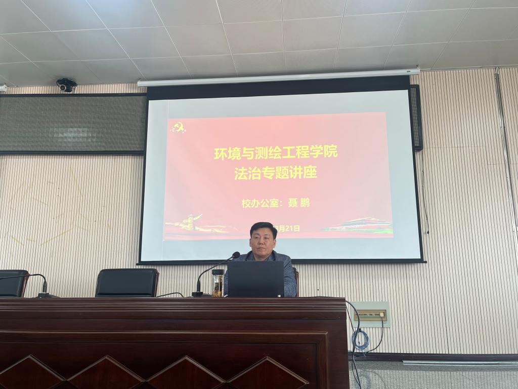 为全面贯彻落实习近平法治思想,进一步加强法治教育,增强法律意识,弘扬和宣传法治精神,3月21日中午,环测学院邀请校法治科科长聂鹏在逸夫楼第二会议室开展法治宣传教育专题讲座,环测学院党委副书记、纪委书记李建新,辅导员及2023级全体学生参加。