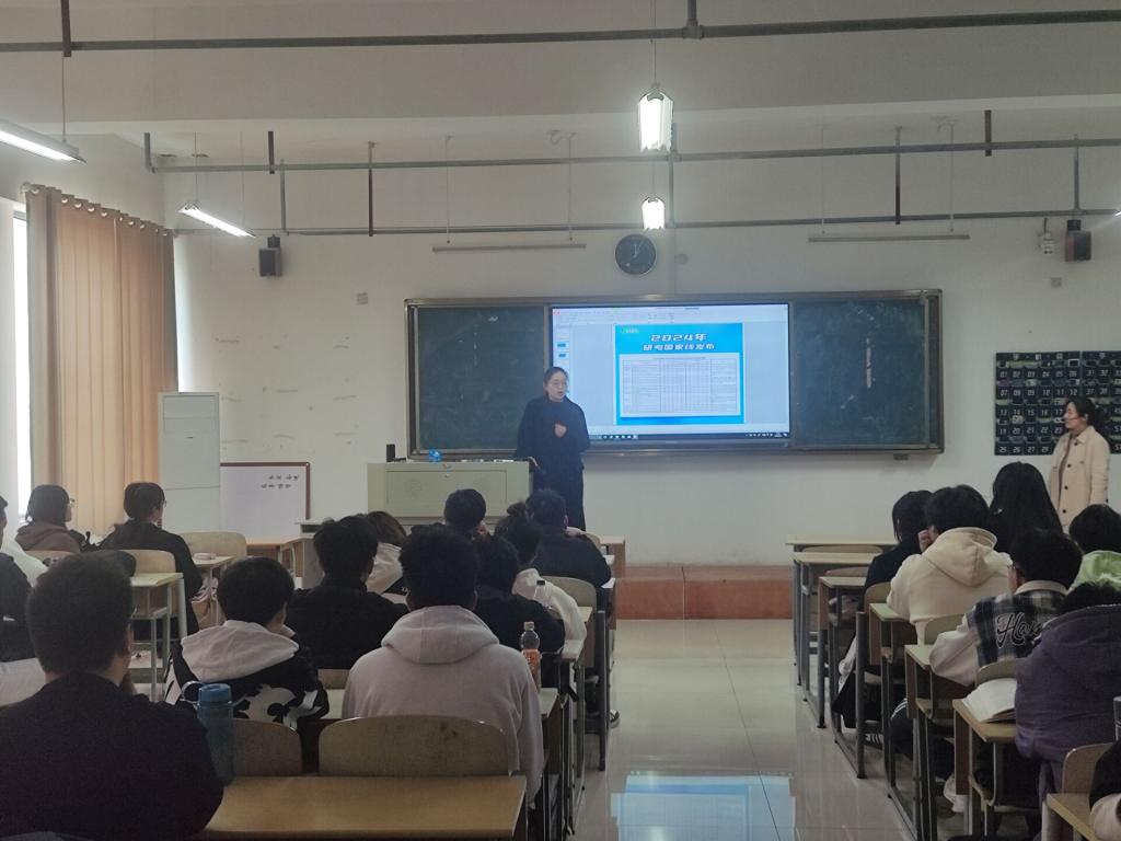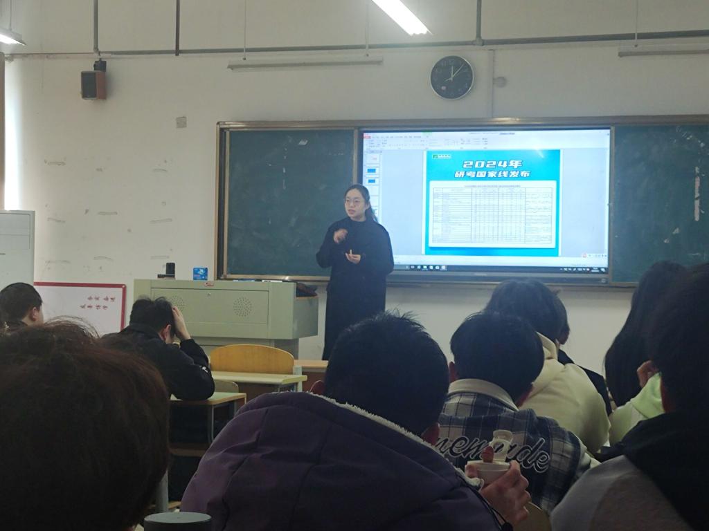 本次班会邀请了专任教师、班主任许虹虹主讲,她首先对当前考研形势进行了全面而深入的剖析。她指出,随着社会对高层次人才需求的持续增长,考研已成为越来越多大学生提升自我、拓宽职业发展路径的重要选择。然而,考研竞争愈发激烈,考生需对报考专业、院校选择、考试科目等关键环节有清晰认知,做到知己知彼,方能百战不殆。随后,许虹虹详细解读了近年来考研政策的变化趋势,强调了提前了解并适应政策的重要性。她提醒同学们要密切关注国家及各高校的最新考研政策,同时,针对不同学科特点,提出了科学备考策略。她强调,扎实的专业基础、合理的时间管理、良好的心理调适是考研成功的关键要素,鼓励同学们尽早启动复习计划,保持积极的学习态度,有效利用各类学习资源。