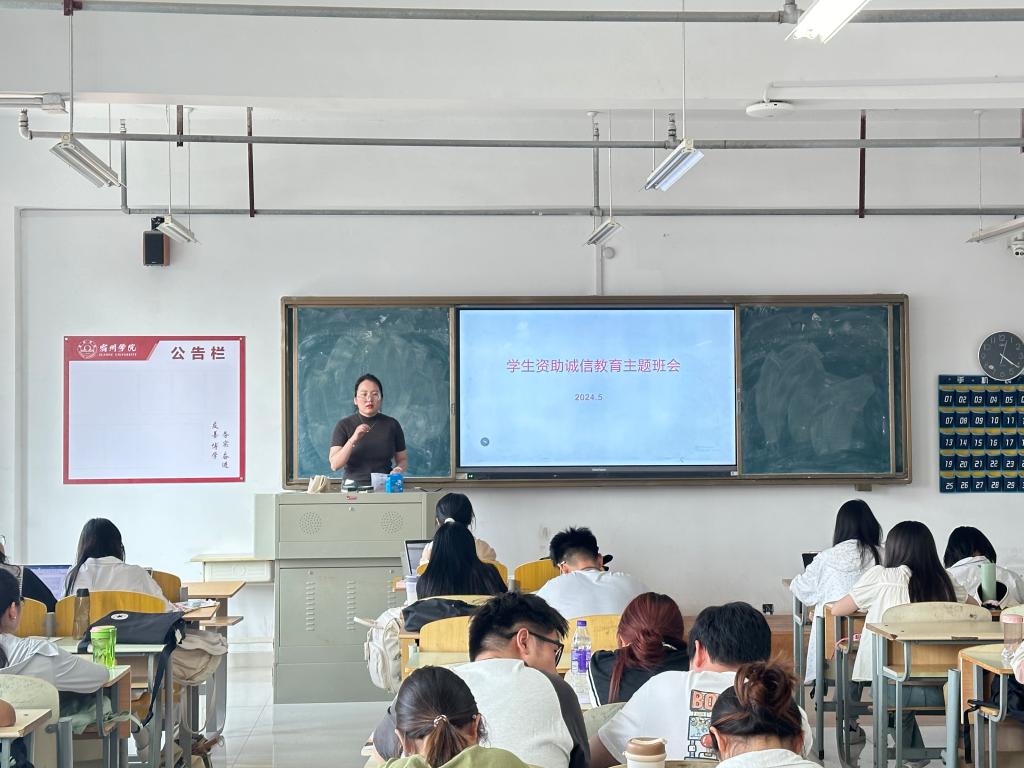 为提高大学生的诚信意识、风险意识和感恩意识,引导学生树立正确的消费观和价值观,增强学生的使命意识和责任担当,环测学院于5月18日至5月31日围绕“资助诚信”召开主题班会,各班级辅导员及全体学生参加。