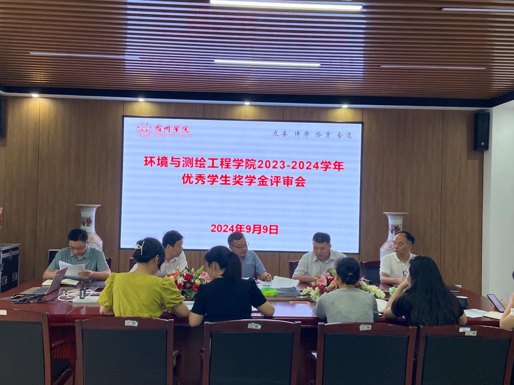 9月9日下午,环测学院在院会议室召开2023-2024学年度优秀学生奖学金评审会议。评审领导小组组长、党委书记蔡若愚主持会议,党委副书记、院长张海洋,党委副书记、纪委书记李建新,教学副院长徐国伟,科研副院长李琦及全体辅导员参加会议。