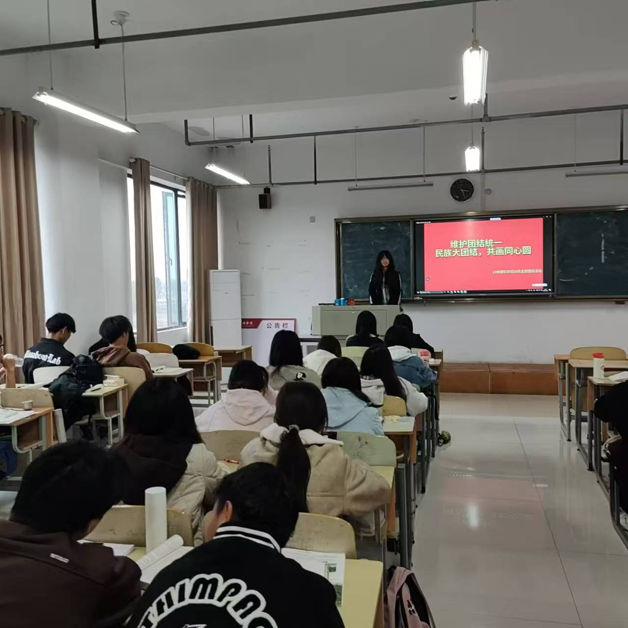 为深入学习贯彻党的民族理论与民族政策,增进各民族同学之间的了解和友谊,促进民族团结进步,10月20日,23地理科学开展“维护团结统一——民族大团结,共画同心圆”主题团日活动。团支书通过宣讲分别从历史文化认同、语言交流融合、风俗习惯尊重、团结互助实践四个方面向同学们介绍民族团结的重要性。