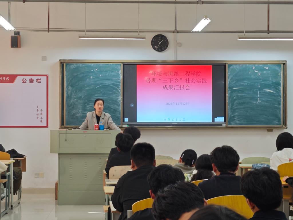 为进一步在展示2024年暑期社会实践成果,鼓励同学们深入基层,服务社会,积累宝贵的实践经验。环境与测绘工程学院于11月12日在实训楼A505成功举办暑期“三下乡”社会实践汇报会,7个实践团队成员及24级各班学生代表参加此次汇报会,汇报会由杨文主持。