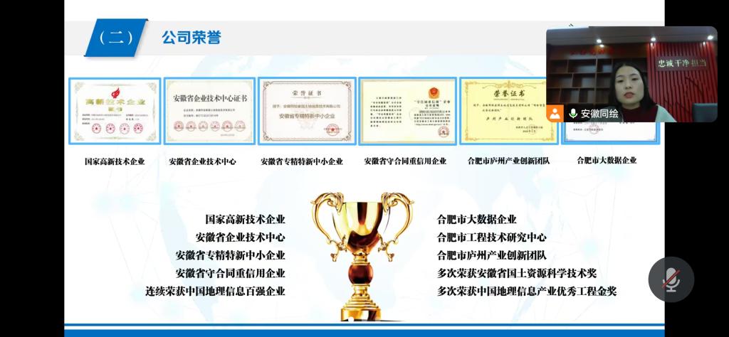 为促进2025届毕业生高质量就业,搭建毕业生与企业沟通的桥梁,环测学院于2024年11月22日成功举办了合肥同绘家园土地信息技术有限公司的线上宣讲招聘会。招聘单位白晓晨经理,人事主管严玉莉,毕业班辅导员刘甜,21测绘工程班,21遥感科技班,23测绘专升本班级部分学生参加了此次招聘会。