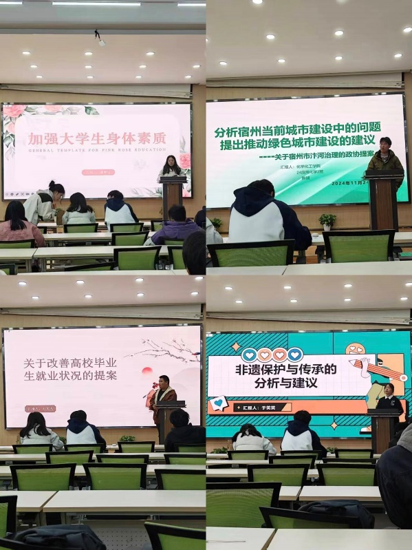 11月24日下午,环境与测绘工程学院在实训楼A507教室举办了团员和青年思想政治教育活动之模拟政协提案大赛。本次活动旨在帮助学生深入了解中国特色社会主义民主政治实践,提高发现问题、分析问题、解决问题的能力,同时增强制度自信。