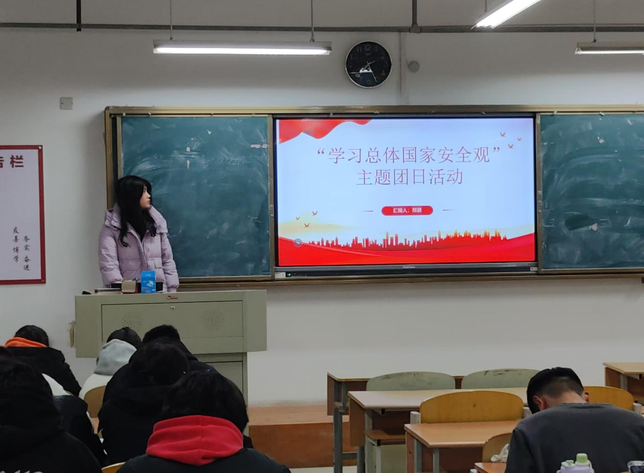 活动伊始,团支书通过精心准备的PPT,阐述了总体国家安全观提出的丰富内涵与重大意义,从政治安全到国土安全,从经济安全到文化安全,一项项国家安全的重要领域配以生动的案例与详实的数据,让同学们深刻认识到国家安全与每个人息息相关,维护国家安全是每个公民的神圣职责。