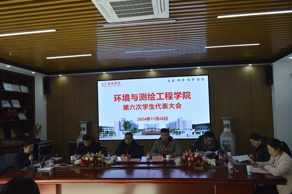 11月26日,宿州学院环境与测绘工程学院第六次学生代表大会在工科楼A315隆重举行。学院党委书记蔡若愚,党委副书记、院长张海洋,党委副书记、纪委书记李建新,科研副院长李琦,学生管理科科长陈影以及辅导员殷瑾出席会议,会议由杨文主持。