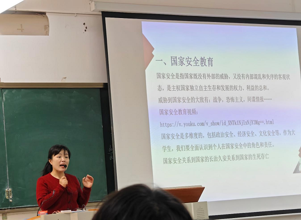班会上殷老师首先介绍国家安全的相关内容,她指出每个学生都要清楚的认识到个人在国家安全中承担的角色和责任。接着她又从同学们身边的经历谈起,讲述校园内学生物品被偷事件,打架事件,电诈事件等等,要求学生重视存在身边的安全问题:校园消防安全、食品安全、交通安全、防电诈等等,时时刻刻提高警惕。